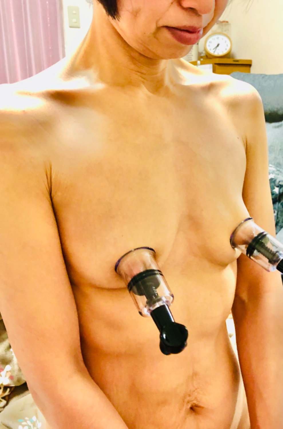 閲覧いただきありがとうございます。普段着と乳首調教、ノーブラ生地に擦れた勃起乳首と中身の対比です。愛奴のとても敏感な乳首を指で潰したり捻り上げたくなりませんか。