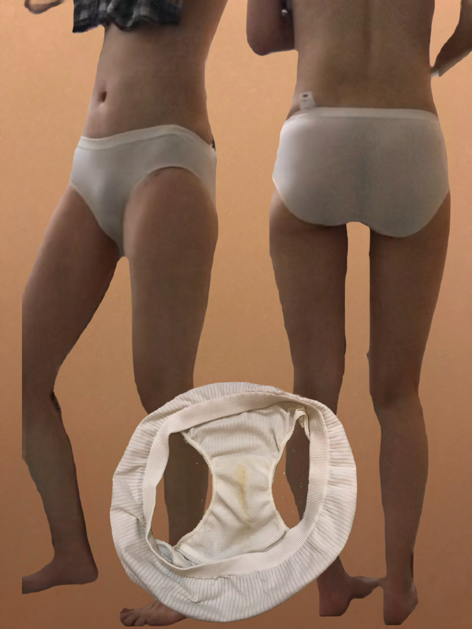 スレンダーの身体に遊んで無さそうな普通のフルバック、綺麗な筋マンを想像させる筋状の汚れがいいですね